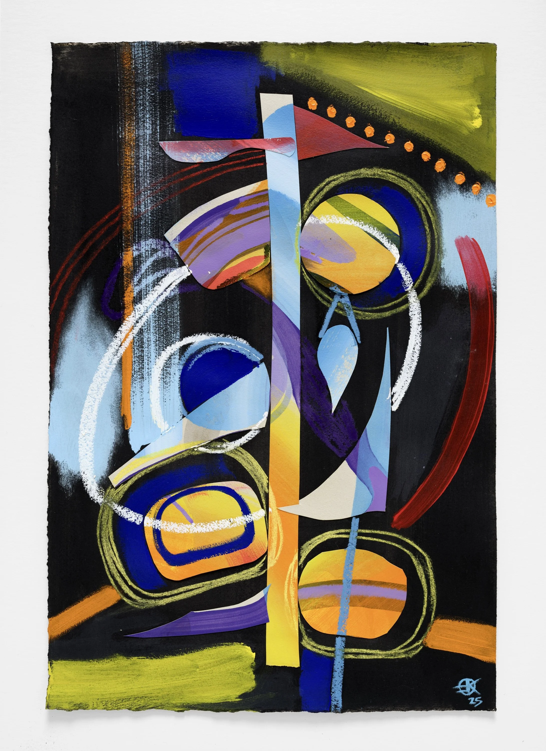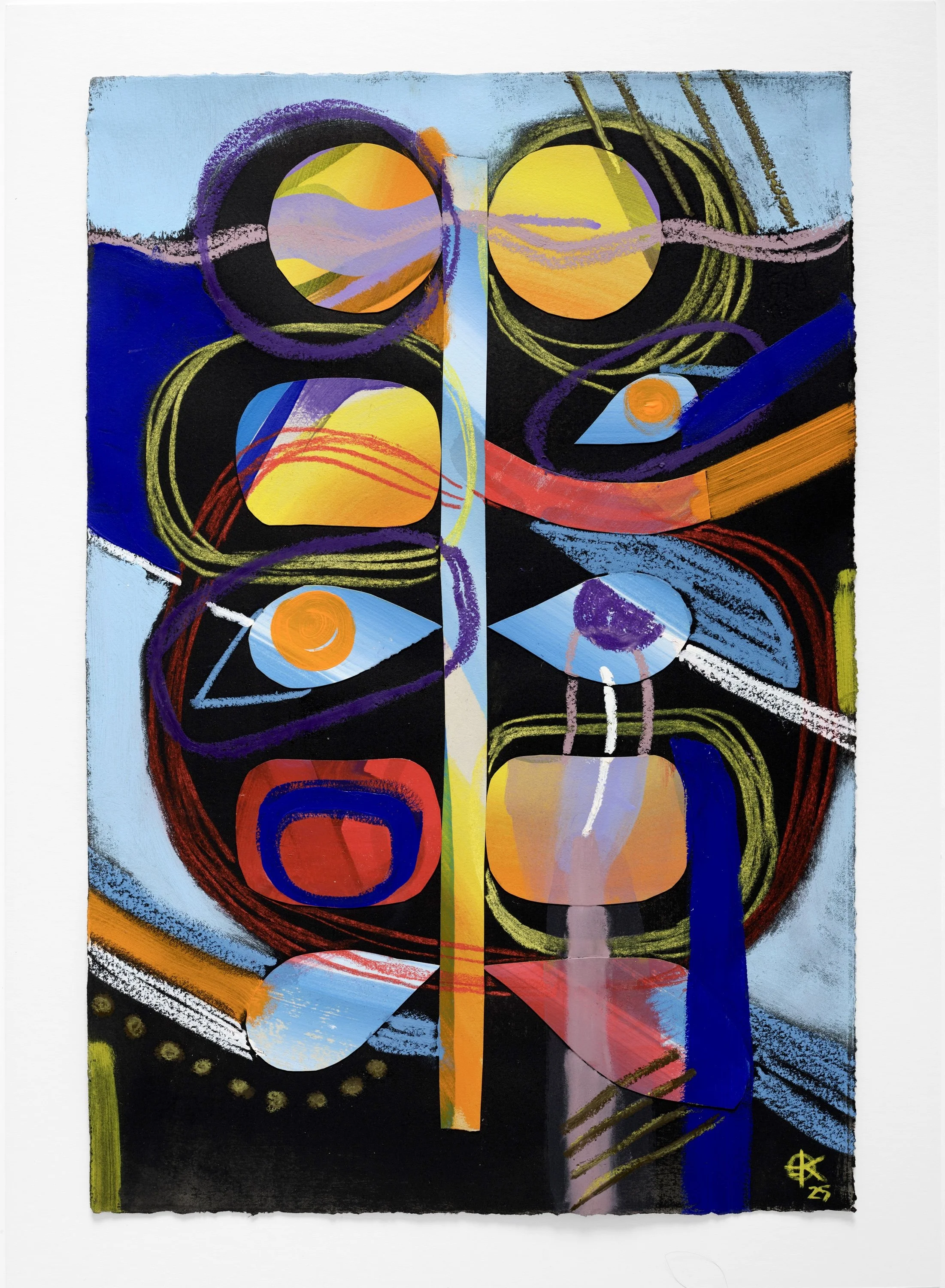 gesso, collage, acrylic, oil pastel, & conte crayon on paper