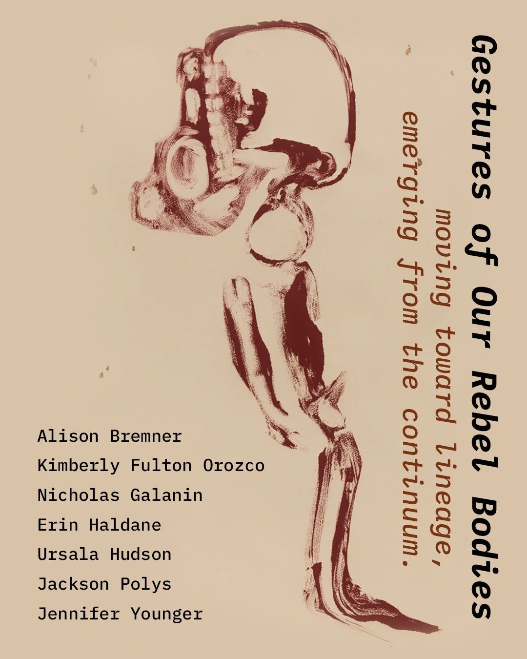 Gestures of Our Rebel Bodies is a group exhibition featuring works from artists Alison Bremner, Nicholas Galanin, Kimberly Fulton Orozco, Erin Haldane, Ursala Hudson, and Jennifer Younger. The exhibition explores how embodied practice, movement, material knowledge, and creative speculation function as engines of cultural continuity and future-making.