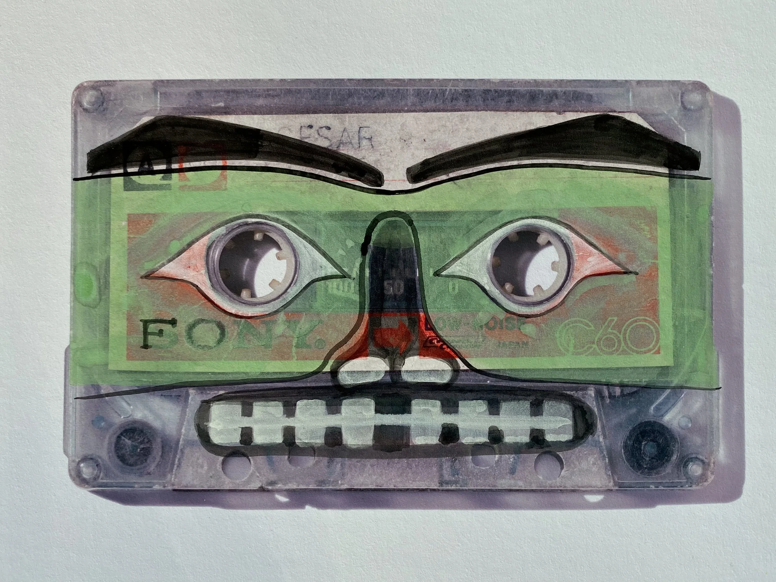 nsecure Mix. Assimilation Stories. 8. No Pelos en la Lengua (Perla Negra), 2022. 4”x6” watercolor on giclée photograph on paper.