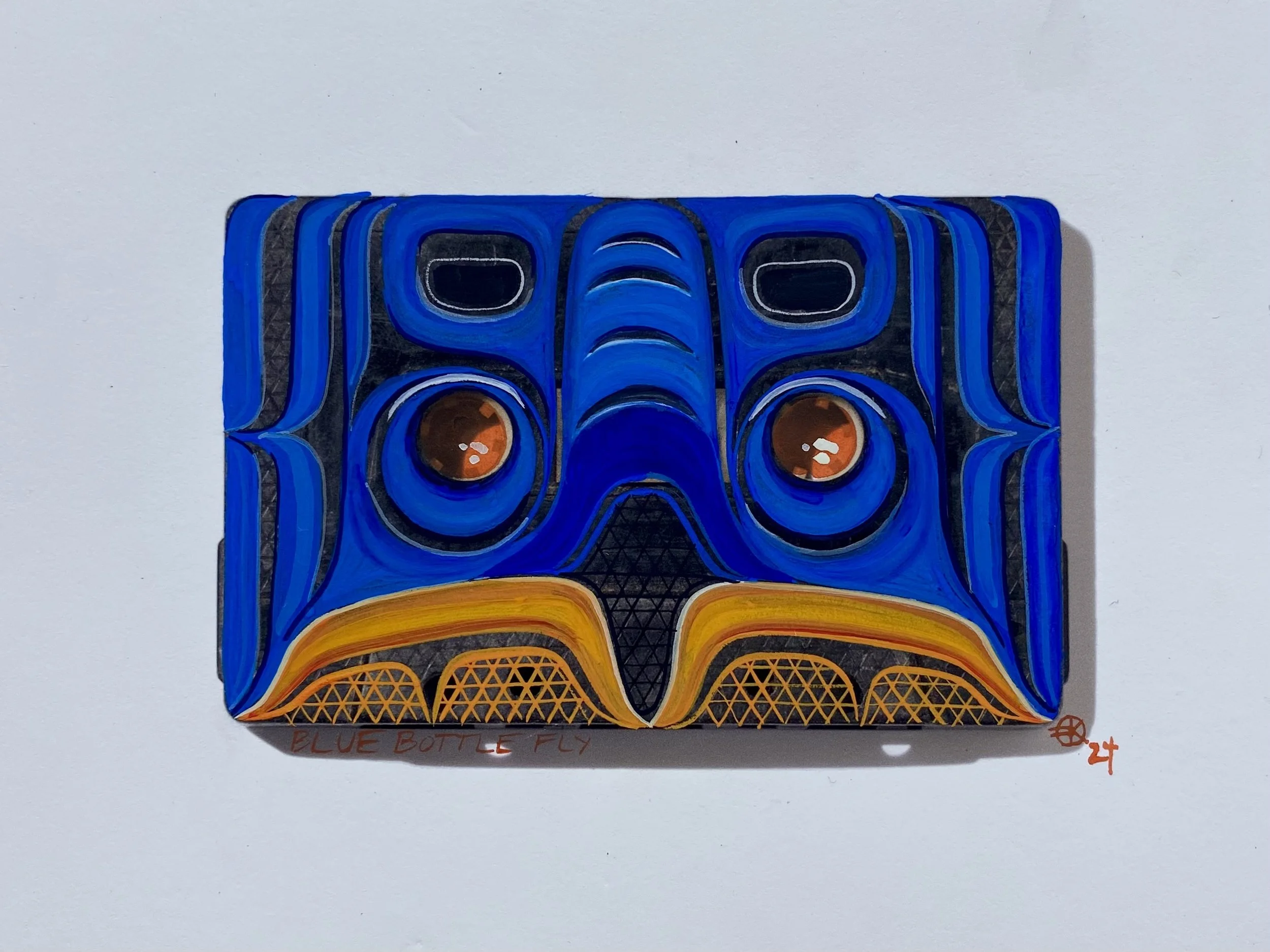 Blue Bottle Fly (Regeneration & Reincarnation), 2024. 5”x7” gouache on giclée print on paper