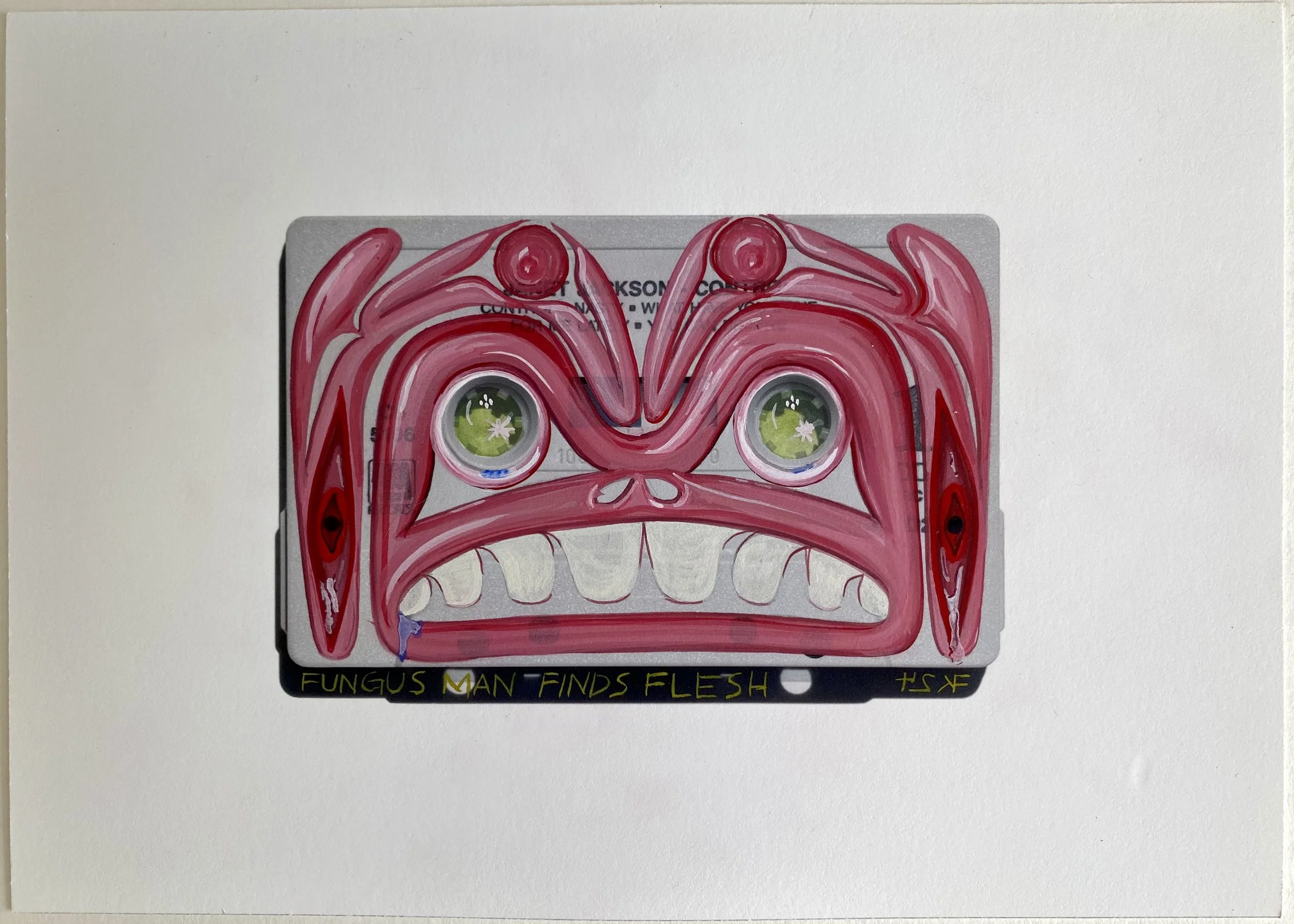 Fungus Man Finds Flesh, 2024. 5”x7” gouache on giclée print on paper